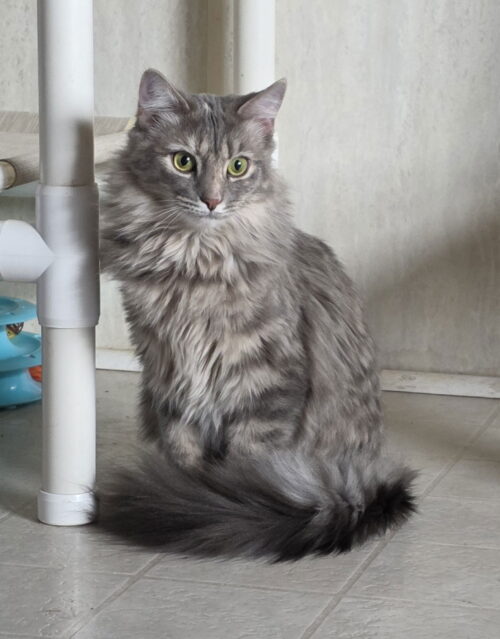 Hi!! I am Ellie. I am just the sweetest girl! I love to cuddle and I LOVE to play! I have been tested with kids (younger and older) and do great with both! If you are looking for a loving kitty that just wants to play and cuddle, look no further! I am YOUR GIRL! See you soon <3 Estimated Birthdate 3-15-2024 • Female • Medium House Trained - Yes Health - Spayed/Neutered, up to date on shots before going home -
